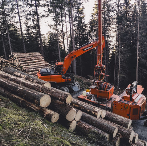 Mit unserem Prozessor können wir gefällte Bäume direkt vor Ort entasten und ablängen. Das spart Zeit, senkt die Kosten und sorgt für eine saubere Holzaufbereitung.